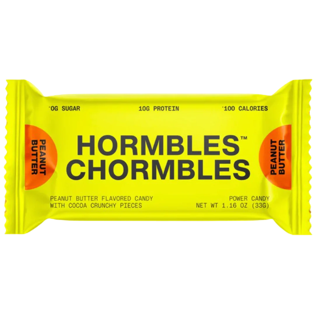 Hormbles Chormbles Peanut Butter Protein Candy Bars offer a creamy peanut butter flavor combined with crunchy cocoa bits for an indulgent snack experience. Each bar delivers 10 g of protein, 0 g of sugar, and 100 calories, making it a satisfying, guilt‑reduced treat that balances taste and nutrition.
